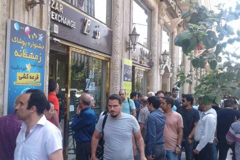از سوی دیگر ماموران از اجتماع مردم در مقابل صرافیها جلوگیری میکنند.