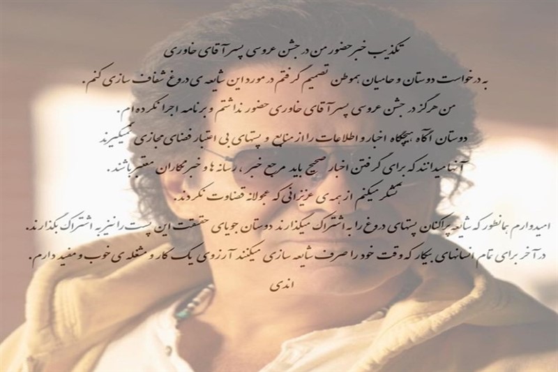 تکذیب شرکت اندی در عروسی پسر خاوری