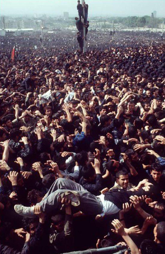 مکان جمعیتی غیر قابل شمارش جمع شده بودند. سربازان گلهایی به نشانۀ عزاداری در دهانۀ تفنگ خود قرار داده بودند و به نگهبانی مشغول بودند. پیکر آیت الله در اقیانوس جمعیت قرار گرفته بود. جوّ از ناله و زاری مردم مملو شده بود. مردم می گریستند و بر سر می زدند. حالت مردم درد و غم عمیقی را منعکس می کردند. بالاخره مراسم خاتمه یافت و پیکر را به ماشین یخچال داری منتقل کردند مردم به دنبال این ماشین می دویدند. خیلی از آنها بیهوش می شدند. در آن زمان، خیابانها مملو از انسانها شد و آنها سعی داشتند به محل دفن امام خمینی بروند. تهران به یکباره پرده ای سیاه پوشید. مردان، زنان و اطفال به راهپیمایی در خیابانها پرداختند، آنها برای وداع با کسی که او را بالاتر از هر چیز می دانستند، می رفتند. مردم در سوم فوریه ۱۹۷۹ در همین خیابانها نجهت استقبال از امام خمینی نیز، همان زمانی که او از تبعید بازگشت و بر فراز زیرانه های کشور، جمهوری اسلامی را بنا ساخت و اکنون تمام جوانب و زمینه های زندگی سیاسی و اقتصادی و اجتماعی ایران تحت حکومت اسلامی با دو امر و احکامش می باشد و زنان تحت پوشش هایی به نام حجاب قرار گرفتند. امام بر علیه تجاوز عراق به پا خواست و با امریکا و انگلیسی به مقابله پرداخت و صدای انقلاب را به گوش همۀ جهانیان رساند تا جایی که به رهبر روحانی بنیادگرایان اسلامی تبدیل گشت. ولی سه شنبه گذشته او در میان جمعیتی فشرده که مشکل می توان آنها را شمارش کرد و چند میلیون نفر تقریب زده می شوند که یکبار نیز از تدفین وی جلوگیری کردند، رو به شهر مقدس مکه بر طبق سنت اسلامی دفن گردید.