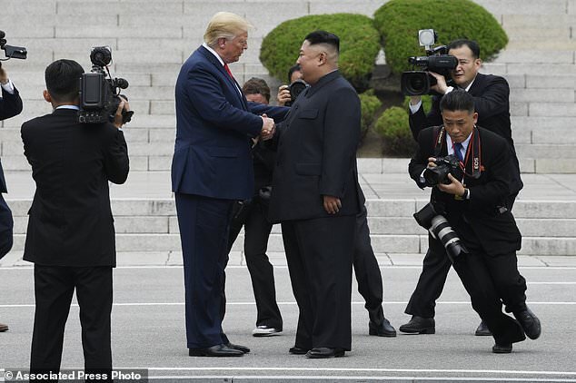 ترامپ که با یک هلیکوپتر نظامی به منطقه مرزی رفته بود، با اون دست داد و سلام و احوالپرسی کرد و به داخل خاک کره شمالی هم قدم گذاشت.