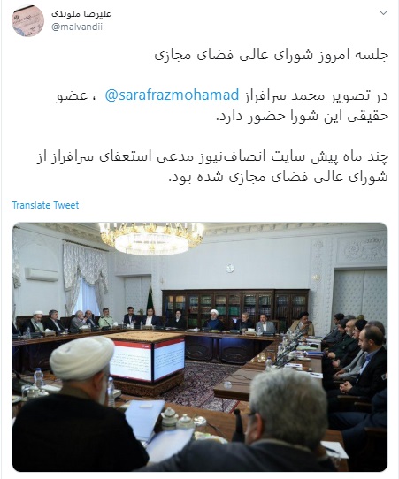 عکسی از محمد سرافراز، رییس پیشین صداوسیما و عضو شورای عالی فضای مجازی -که پیش از این انصاف نیوز خبری دربارهی استعفای او از این شورا را منتشر کرده بود- در جلسهی اخیر شورای عالی فضای مجازی در برخی شبکههی اجتماعی منتشر شد که سرافراز دربارهی حضورش میگوید: من مدتهاست که در این جلسات حاضر میشوم و باید دید هدف از انتشار این عکس چه بوده است.