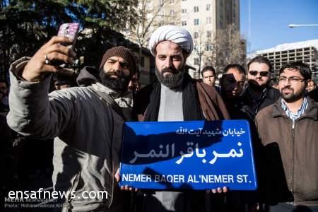 همچنین به نظر میرسد تغییر نام یک شبهی خیابانی به نام شیخ نمر در تهران که توسط همین جریان نصب شد و بازتاب رسانهای گستردهای پیدا کرد و موجب اعتراض وزارت خارجه نیز قرار گرفت، میتواند در همین راستا ارزیابی شود.