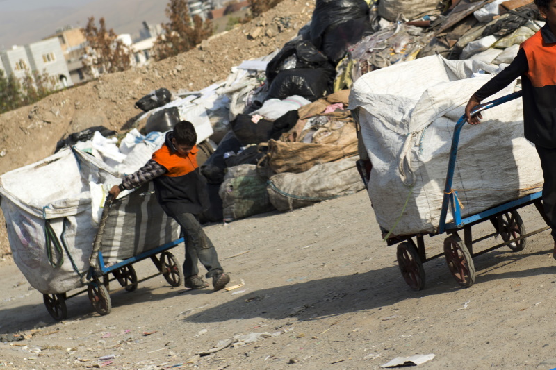 عرفان بیشتر وقتها جلوی در خانههای این حوالی میرود تا کسی او را برای کار در خانه قبول کند، با چهرهای سرشار از تمنا میگوید: «خاله اگه کاری داری بگو من انجام بدم، هر کاری باشه من انجام میدم.» پسر کوچک دمپایی زوار در رفته به پا دارد و با وجود سوزش باد نیمه زمستانی لباس نازک و مندرسی به تن دارد، از درس و مشقش میپرسم و مشخص میشود از همین ابتدای راه کودک هشت ساله ترک تحصیل کرده و قرار است تا دنیای کودکیاش فقط در بین این زبالهها نقش ببندد. با هیجانی کودکانه میگوید:«خاله من خودمو اخراج کردم، من بلوچما، یعنی افغانی نیستم که نتونم درس بخونم ولی خودم، رفتم خودمو اخراج کردم»