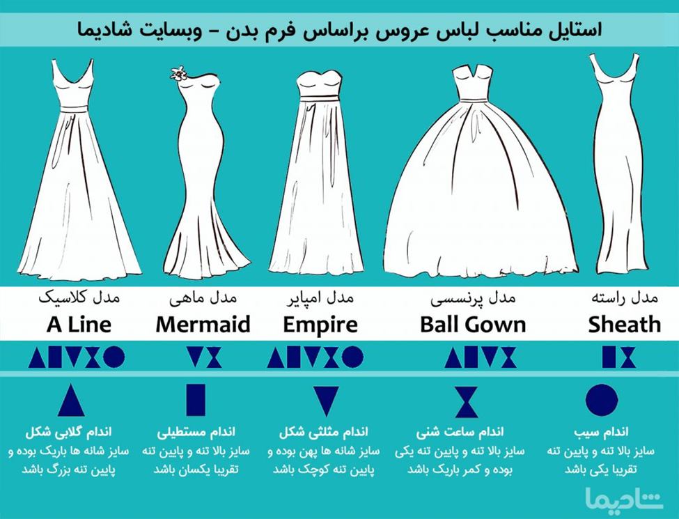 توضیح تصویر : راهنمای انتخاب لباس عروس براساس فرم بدن – منبع سایت شادیما