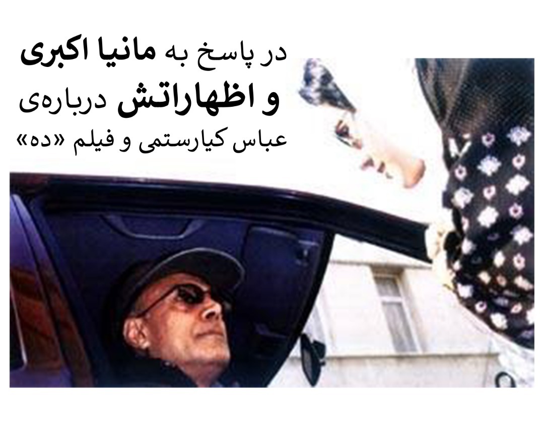 احمد کیارستمی فرزند عباس کیارسمتی کارگردان مشهور سینما در یادداشتی به ادعاهای مانیا اکبری بازیگر فیلمی به کارگردانی پدرش به نام «ده» واکنش نشان داد.