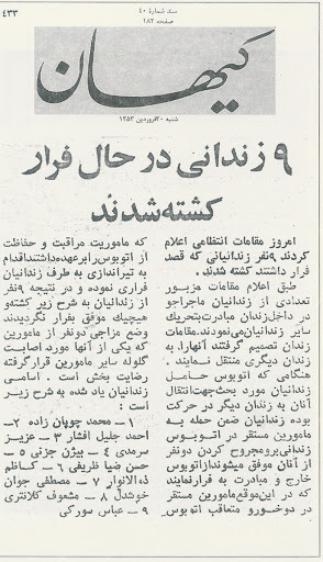 گاهی اوقات می‌گفتند یک مدلی خبرها را منتشر کنید و قلب واقعیت میشد. ما بچه‌های فدایی و مجاهدین خلق ارتباط داشتیم، اینها خبرهای زندان را به سازمان می‌دادند و آنها هم خبرها را به ما می‌دانند. همه می‌دانستند اینکه آنها در هنگام فرار کشته شدند، درست نیست. چون همانطور گفتم یکی شعر می‌سرود و دیگری غم‌نامه می‌نوشت. نمیشد که نه نفر را اعدام کنند و کسی نفهمد. ساواک بعدا به ما گفت مبادا درباره‌ی این خبر چیز دیگری بنویسید؛ چون می‌دانست ما همه فهمیده‌ایم اینها را اعدام کرده‌اند. حتی با خانواده‌ی این کشته شده‌ها نمی‌توانستیم ارتباط بگیریم چون تلفن آنها هم تحت کنترل بود، گاهی ما را احضار می‌کردند و می‌پرسیدند چرا با خانواده‌ی فلانی تماس گرفته‌اید.