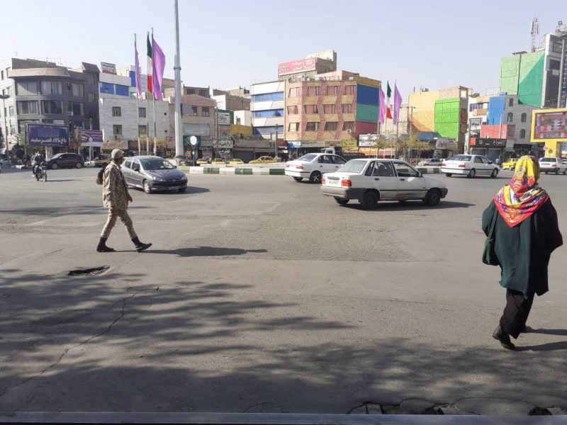 نرسیده به میدان قدس یک ایستگاه تاکسی قرار دارد، تاکسیهای زیادی منتظر ایستادهاند و به نظر میآید که مسافری وجود ندارد. یکی از رانندگان به محضی که ما را میبیند به سمتمان میآید و میپرسد کجا میخواهیم برویم. میگویم «ما خبرنگاریم. داریم گزارشی درمورد وضعیت معیشتی مردم شهر قدس تهیه میکنیم. وضعیت تاکسیرانی اینجا چطوره؟»، میگوید «اینجا که وضع ما خیلی خرابه. این همه تاکسی وایساده اما مسافر نیست. تازه بیشترِ تاکسیا الان تو راهاند؛ بیان دیگه اینجا جا نمیشن. مقصد تاکسیا اینجا شهریاره. مشتری که نیست؛ به ما هم گفتن بهخاطر کرونا باید سهنفره برید». میپرسم چقدر طول میکشد تا سه نفر پر شود، میگوید «مشخص نمیکنه، ۱۰ دقیقه، یک ربع، اینها». درمورد تاثیر کرونا روی کاروکاسبی میگوید «کرونا که خیلی اصلا. کرونا باعث شد کار تاکسی اصلا خوابید. الان دانشگاهها بسته است دیگه، کار ما هم بیشتر با دانشگاه بود».