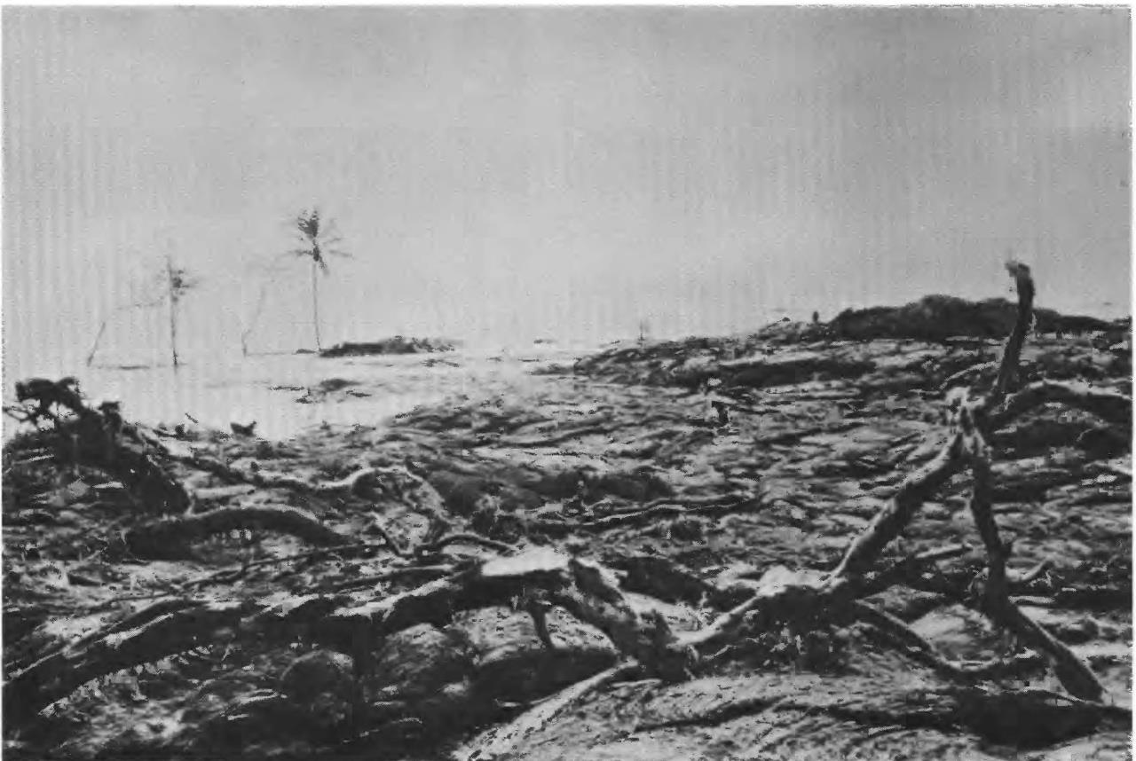 در ساعت ۳:۳۲ بامداد روز شنبه ۲۹ نوامبر ۱۹۷۵ یک زلزله شدید که پیشلرزه بزرگترین زلزله قرن ۲۰ام محسوب میشد بیشتر ساکنین جزیره هاوایی شامل ۳۲ نفر که در نزدیکی ساحل هالاپی[۲] چادر زده بودند را از خواب بیدار کرد. ساحل هالاپی در ساحل جنوبی از درختان نخل و نارگیل تشکیل شده است. منشأ وقوع پیشلرزه ۷/۵ ریشتری در عمق ۸ کیلومتری زیر جناح راست آتشفشان کیلاوو[۳] و بهصورت تقریبی در ۵ کیلومتری داخل ساحل کامواموا[۴]بود. در نور کم پیش از طلوع خورشید، اردوزدگان در هالاپی نزدیک به ۳۲۰ متری بالاتر از پوکامکاو[۵](تپه فراموش شده) ابرهای گرد و غبار که در حال بالا آمدن از تپههای در حال سنگریزش سنگ از صخرههای تندساحلی بودند را میدیدند. اعضای اردوگاه، بهطور غریزی کیسهخوابهای خود را از منطقه در حال ریزش سنگ بهسمت نزدیکتر به ساحل جابجا نمودند. یک پسر جوان بعدها تعریف کرد که در آنزمان به پدرش گفت که احساس میکند واقعه بدی در حال وقوع است و می خواهد منطقه را ترک کند. او از این قضیه مطمئن بود ودر حالی که دیگر اعضای اردو برگشتند و خوابیدند.