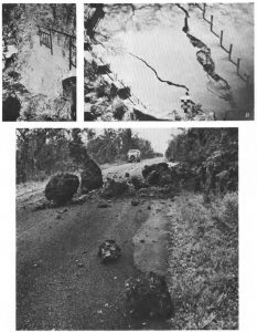 در حدود نیمساعت پس از لرزش اصلی، لرزهنگارهای نزدیک نزدیک قله کیلاوا لرزشهایی با دامنه کم و هماهنگ که مرتبط با حرکت ماگما بود را ثبت نمود. آسمان به رنگ زرد و نارنجی درآمد سپس گدازههای آتشفشانی شروع به فوران کرد تا شعاع ۵۰۰ متر به سمت کالدرا و بهسمت هالمائوما پراکنده شد. علت فوران گدازهها وقوع زلزله ۲/۷ ریشتری بود. گدازهها تا ارتفاع ۵۰ متر در عرض ۱۵ دقیقه ارتفاع پرتاب پرتاب گدازهها به حدود ۵ تا ۱۰ متر کاهش یافت. دهانههای آتشفشانی با فورانهای آتشنشانی محدودهای در حدود ۲۵/۰ کیلومتر مربع را پوشش دادند. مقدار عمق نفوذ کم گدازهها در جزیره و مدت زمان کوتاه فوران آتشنشانی نشانگر این بود که فوران آتشفشانی تحت عامل زلزله صورت گرفت و عامل فوران آتشفشان انرژی درونی نبوده است. فوران آتشنشانی صورتگرفته در پی زلزله هاوایی خسارت جانی و مالی در جزیره بر جای نگذاشت.