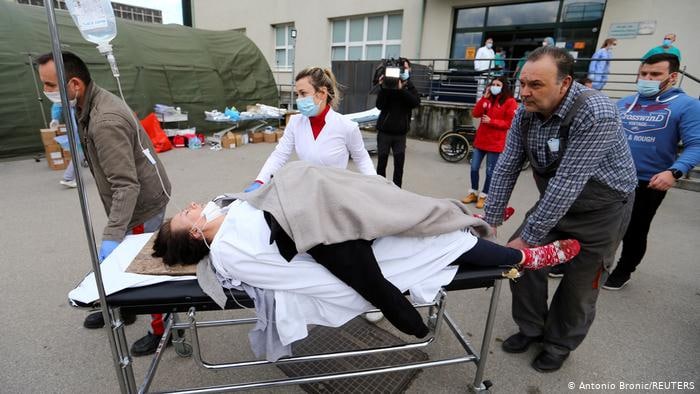 تیم اوچا در ۳۰ام ماه دسامبر به پترینجا وارد شد و با مدیران و متخصصین کادر درمانی مرکز درمانی اولیه و بیمارستان محلی در مرکز درمانی دام زدراولجا دیدار کردند. هر دو مرکز درمانی خسارتهای زیادی از زلزله دیدند و تخلیه شدند. بیماران بستری و مبتلا به کووید-۱۹ به بیمارستانهای واقع در زاگرب و کارلواک منتقل شدند. بیماران بستری درازمدت نیز به پادگان های نظامی واقع در نقاط دور از شهر منتقل شدند.