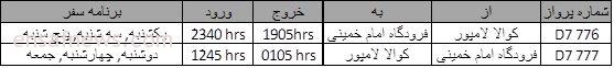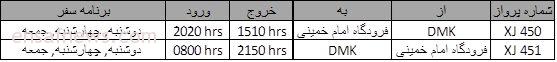 توجه: تمام زمانهای ارایه شده بر اساس زمان محلی مقاصد مورد نظر است.
