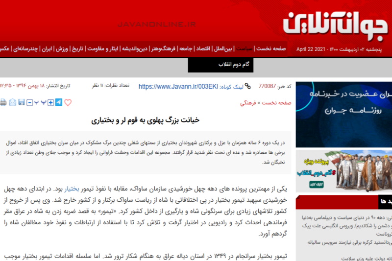 امیر هاشمی مقدم، پژوهشگر فرهنگی و عضو بخش تحلیلی انصاف نیوز در انتقاد به تقدیس یکی از چهرههای خطرناک بختیاری -که در زمان پهلوی تیرباران شده است- در روزنامهی جوان، نوشت: