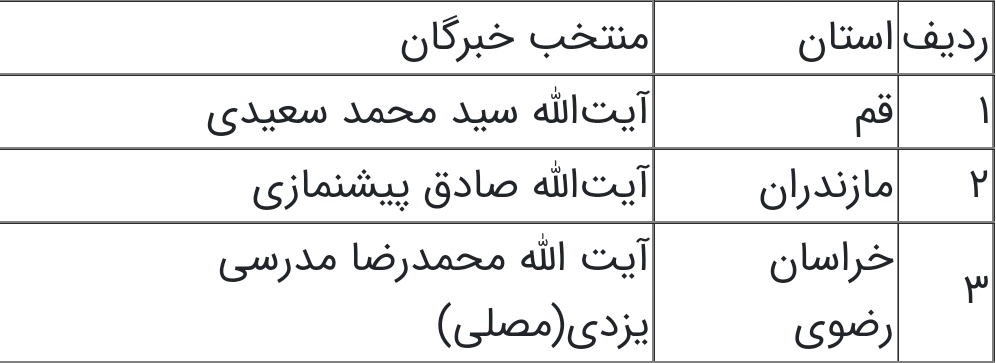 در جدول ذیل، اسامی قطعی اعضای منتخب خبرگان رهبری در استانها آورده شده است.