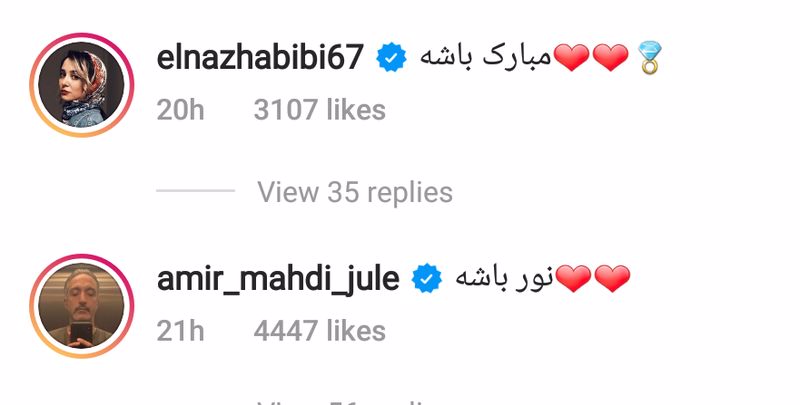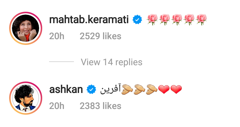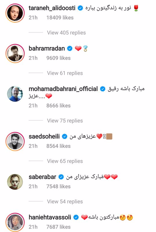 تعدادی از کامنتهای پست اینستاگرامی نوید محمدزاده: