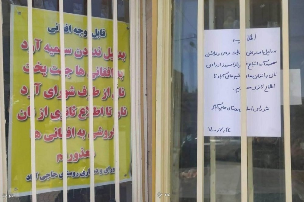 یک نانوا روز شنبه ۲۴ مهر ماه در روستای حاجی آباد اراک در اقدامی با نصب یک اطلاعیه به بهانه کمبود سهمیه آرد اعلام کرده بود که به اتباع بیگانه نان داده نمی شود. فرماندار اراک در این باره گفت که پس از اطلاع از این ماجرا دهیار و صاحب نانوایی احضار و کمتر از دو ساعت اطلاعیه برداشته شد. او همچنین از پیگیری برخورد با شورای روستا و دهیار خبر داده است.
