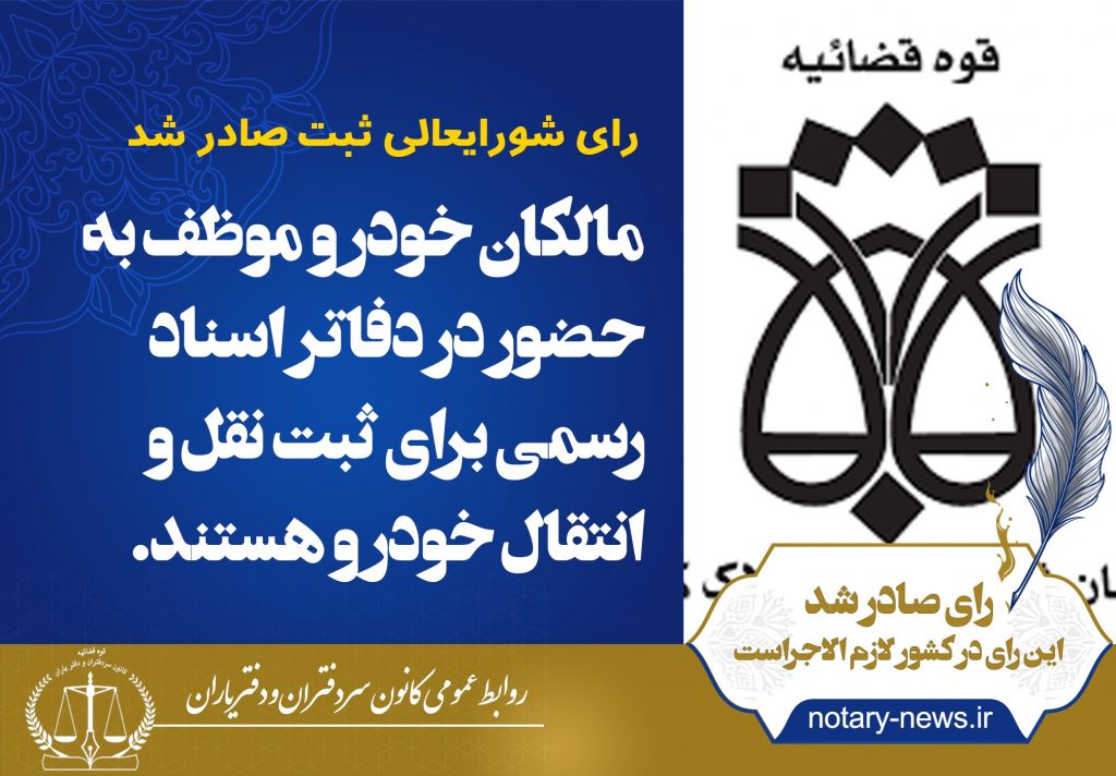 بر اساس رای وحدت رویه شورایعالی ثبت کشور ماده ۲۹ قانون رسیدگی به جرائم رانندگی بی چون و چرا لازم الاجرا بوده و مالکان خودرو باید دردفاتر اسناد رسمی نقل و انتقال خودرو را ثبت کنند.
