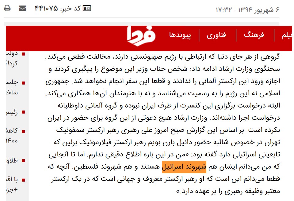 چند نمونهی انتشار عبارت «شهروند اسرائیل» در سایت «فردا» که مفتاح عزیز سالها مدیر آن بود و دیگر رسانهها: فردا نیوز سال ۱۳۹۴ کد خبر ۴۴۱۰۷۵ [لینک]، رجا نیوز سال ۱۳۹۴ کد ۲۲۰۷۶۲ [لینک]، فارس سال ۱۳۹۳ [لینک]، فردا نیوز سال ۱۳۹۳ [لینک]، فردا نیوز سال ۱۳۹۴ کد ۴۲۳۷۴۰ [لینک]، ایسنا ۱۸ مهر ۱۴۰۰ [لینک]