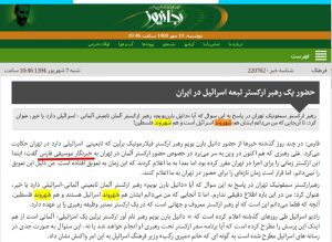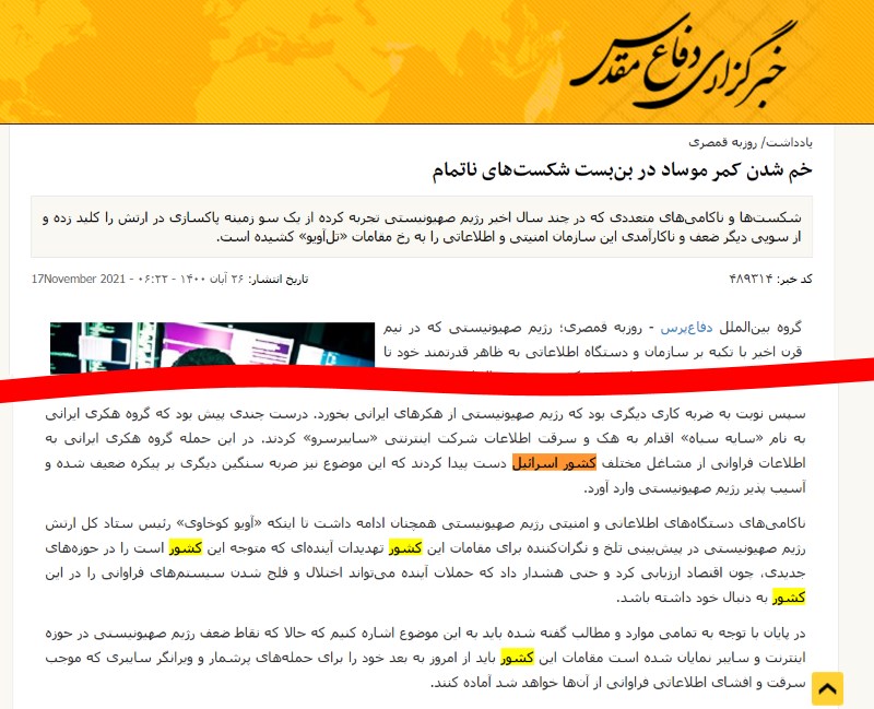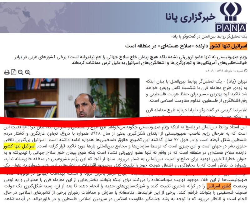 از همهی موارد بالا بگذریم: سایت شورای هماهنگی تبلیغات اسلامی و خبرگزاری دفاع مقدس هر دو در همین ۲۶ آبان ۱۴۰۰ در یادداشتی اختصاصی به قلم «روزبه قمصری»، بارها اسرائیل را کشور خواندهاند. [لینک] و [لینک]. آقای قمصری در پنجم آبان ماه گذشته در کیهان هم یادداشت نوشته است [لینک]. غریبه نیست!