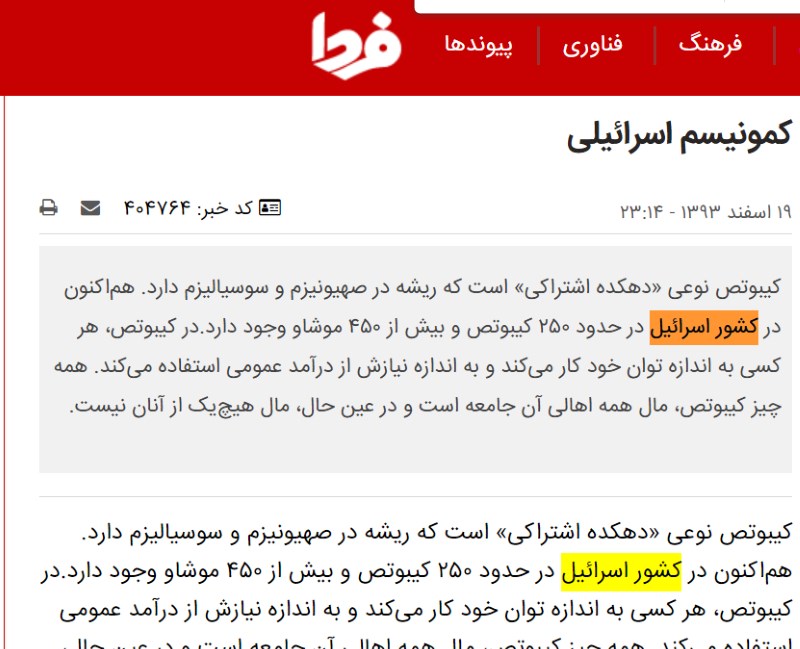 سلام. یک مشت تروریست از گوشه و کنار دنیا و طبق یک ایدۀ تخیلی در کتاب مقدسشان، دور هم جمع شده اند و با انواع روش های کشت و کشتار یک حیطۀ سرزمینی را غصب کرده اند. یک پرچم هم بالا برده اند که “ما کشوریم”. دقیقا مثل “داعش”. گزارش اخیر سازمان ملل هم این حاکمیت تروریستی را به عنوان “تنها حاکمیتی که از آستانۀ “آپارتاید” عبور کرده» معرفی می کند. اسرائیل فقط ضد ایران، فلسطینیان یا اعراب نیست. “ضد بشریت” است. (۱) تا این جا هم نظریم؟