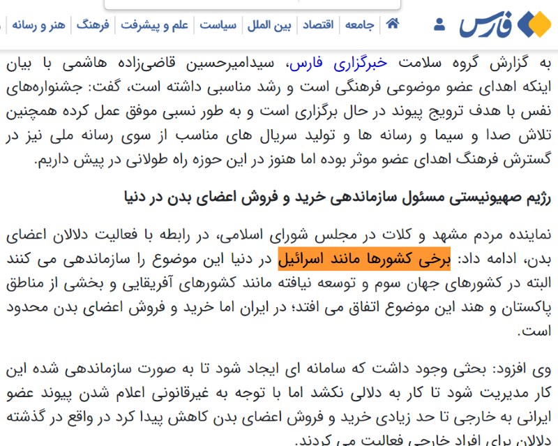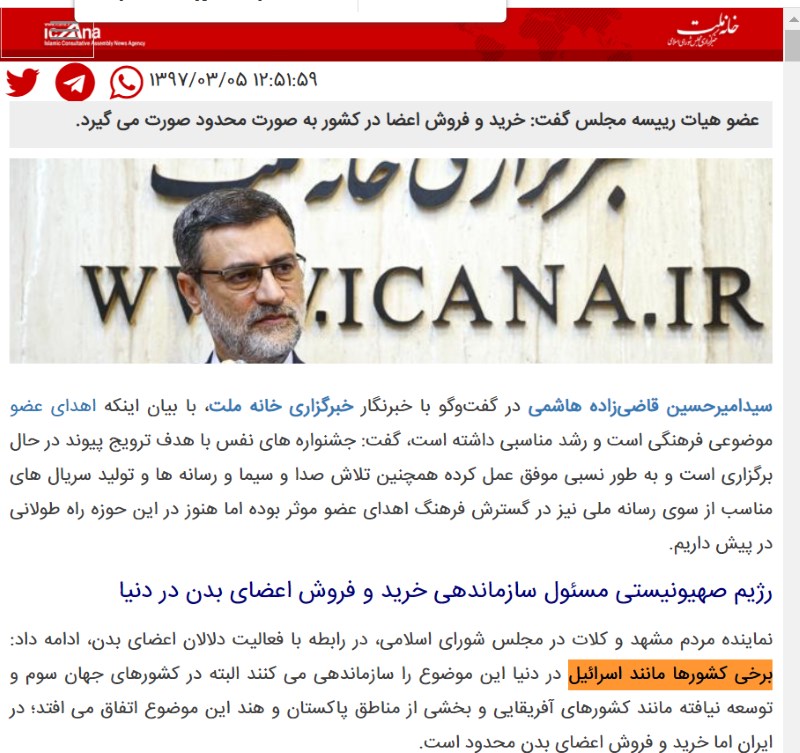 سیدامیرحسین قاضیزاده هاشمی در حال حاضر معاون رییس جمهور و رییس بنیاد شهید است و تا قبل از آن هم نایب رییس مجلس بود. انقلابی هم که هست؟ در مصاحبه با خبرگزاری مجلس که خبرگزاری فارس هم بازنشر کرده، گفته «برخی کشورها مانند اسرائیل در دنیا این موضوع را …». خب؟ [لینک مجلس]، [لینک فارس]