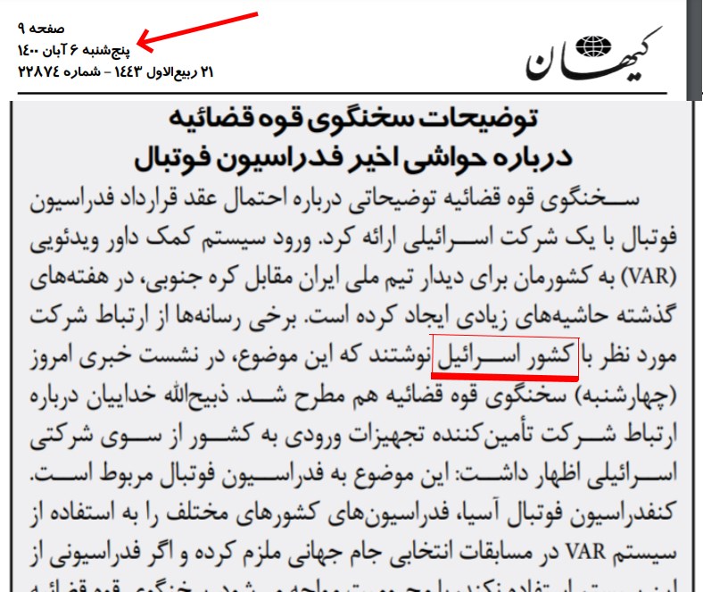 کیهان که حداقل دو بار در آبان ماه و حالا دوباره به مصاحبهی انصاف نیوز گیر داده بارها و بارها از عبارتهای «کشور اسرائیل»، «شهروند اسرائیل» و خود «اسرائیل» استفاده کرده است. تازهترینش در همین آبانماه اسرائیل را کشور خوانده است. میدانم باور نمیکنید 🙂 تصویر را و [لینک] را ببینید. ۶ آبان ۱۴۰۰