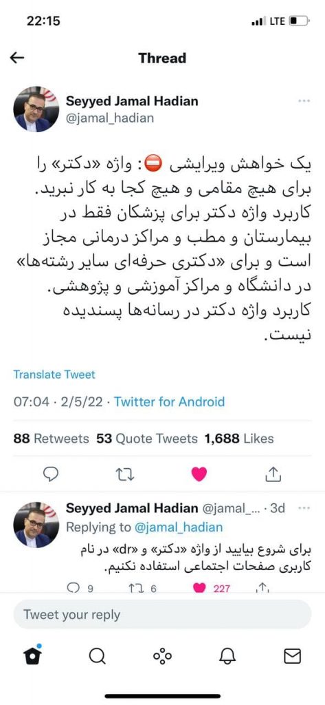 امیر هاشمی مقدم، پژوهشگر فرهنگی و عضو بخش تحلیلی انصاف نیوز در یاددشتی دربارهی بهکار بردن عناوین دکتر و مهندس نوشت: