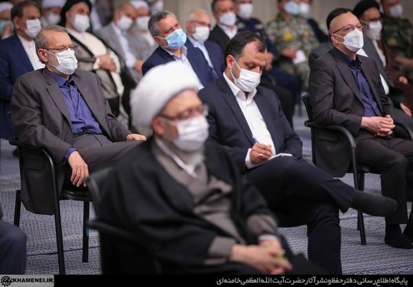خیلی متشکّریم از خدای متعال که این لطف را در حقّ ما کرد که بتوانیم یک بار دیگر، ولو به صورت محدود، در جمع شما مسئولان و متصدّیان و کارگزاران نظام در این ایّام مبارک، ماه مبارک رمضان حضور پیدا کنیم و انشاءالله به برکت اخلاص شما، صفای شما، دعای شما برکات الهی را بتوانیم به دست بیاوریم و مشمول الطاف الهی بشویم. از جناب آقای رئیسجمهور هم خیلی متشکّرم؛ گزارش خوبی بود که ایشان دادند و انشاءالله بتوانند کارها را با همین شکل و با شتاب مناسب در زمان مناسب انشاءالله پیش ببرند.