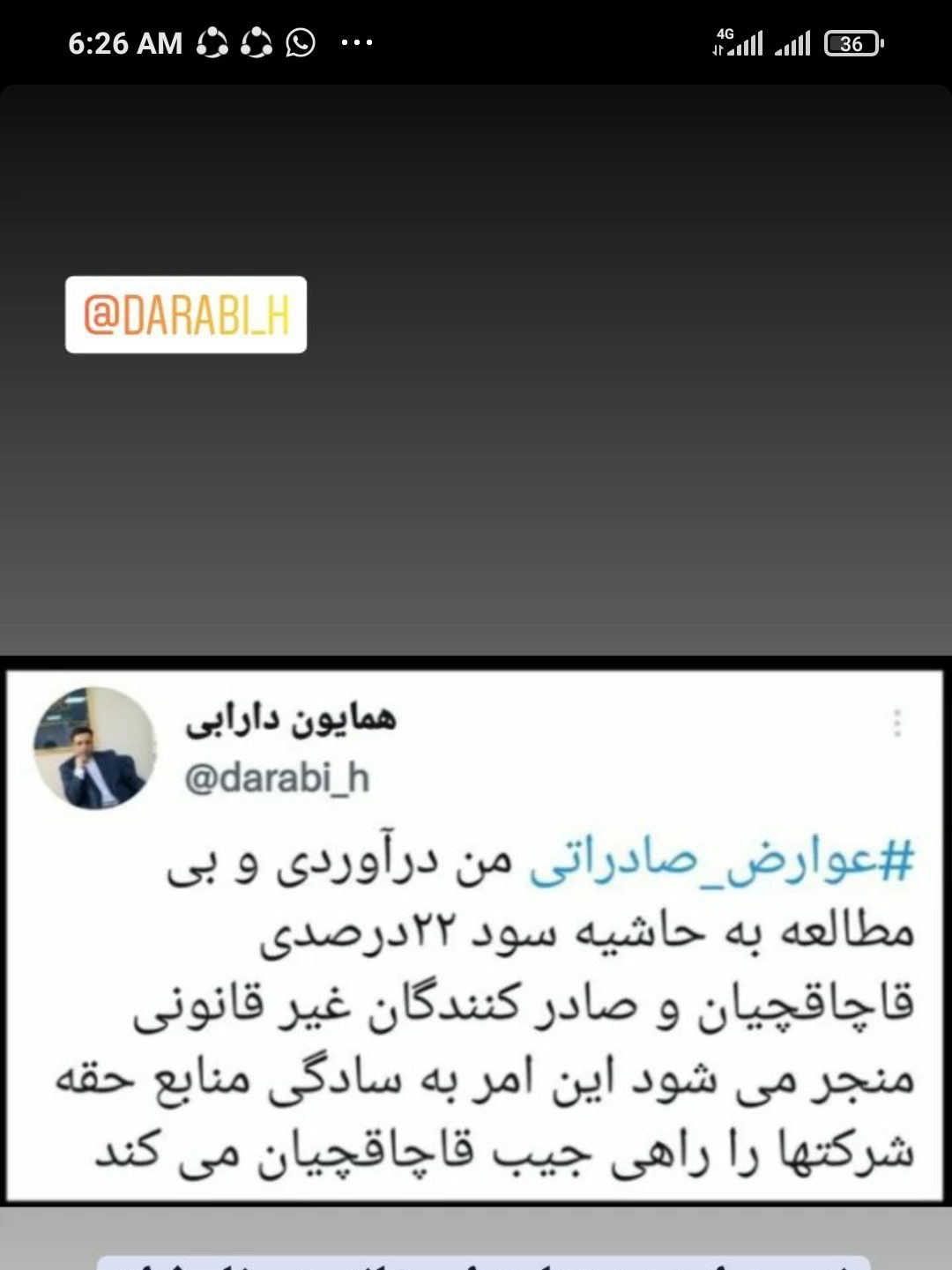 عکس | مسئله غم انگیز تولید کننده و صادرکننده؛ سود قاچاقچی ۲۷ فروردین ۱۴۰۱۰ زمان مطالعه کمتر از یک دقیقه برچسب هاترغیب به قاچاق قوانین دست و پا گیر صادرات ۲۷ فروردین ۱۴۰۱۰ زمان مطالعه کمتر از یک دقیقه فیسبوک ایکس لینکداین پینتریست واتس آپ تلگرام اشتراک گذاری با ایمیل چاپ