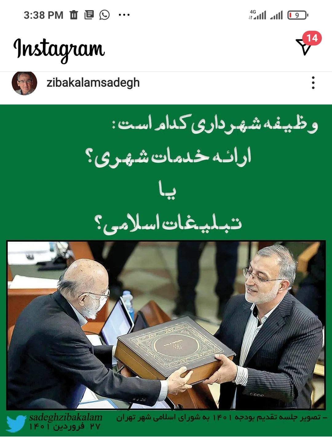 عکس | زیباکلام: شهرداری ارآئه خدمات شهری یا تبلیغات اسلامی ۲۷ فروردین ۱۴۰۱۰ زمان مطالعه کمتر از یک دقیقه انتهای پیام برچسب هازاکانی زیباکلام شهرداری ۲۷ فروردین ۱۴۰۱۰ زمان مطالعه کمتر از یک دقیقه فیسبوک ایکس لینکداین پینتریست واتس آپ تلگرام اشتراک گذاری با ایمیل چاپ