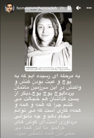 همایون غنی زاده نیز با باز نشر پست هدیه تهرانی یادداشتی در زیر آن نوشت: به مرحله ای رسیده ایم که به پوچ و عبث ودن کنش و واکنش در این سرزمین ماتمان رده! پوچ پوچ پوچ. دیگر از پست گذاشتن هم خجالت میکشم چرا که همه و همه و همه، کاری است که میتوانم انجام ده و چه ناتوانی دردآوری است.