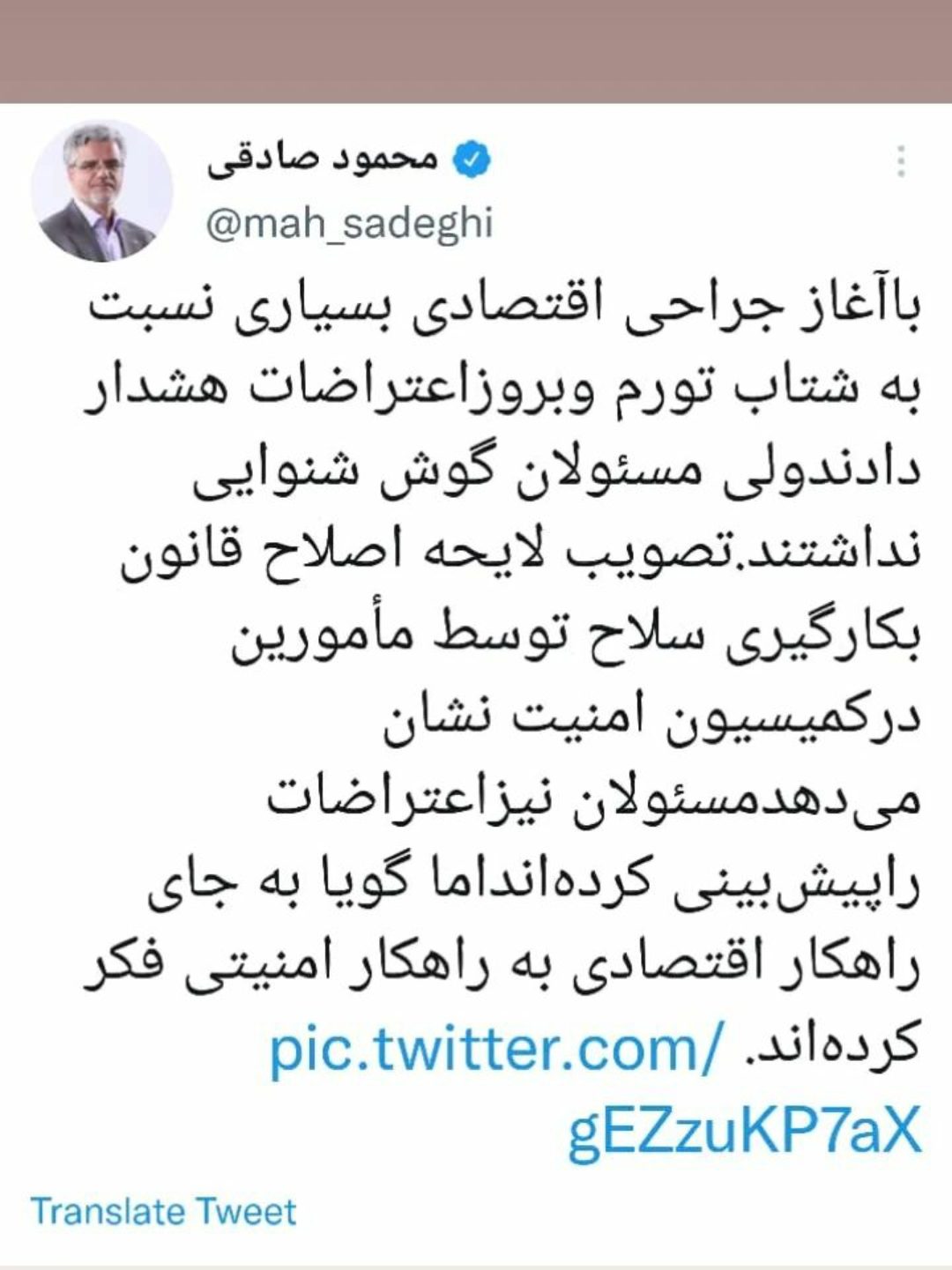 توییت محمود صادقی و محمد سرفراز درباره «جراحی اقتصادی» و اعتراضات