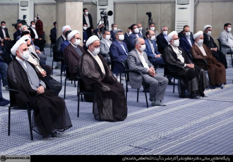 خیلی خوش آمدید برادران عزیز، خواهران عزیز، شخصیّتهای اثرگذار در مسائل مهمّ کشور ــ که یکی از شئون قوّهی قضائیّه همین است که اثرگذار در مهمترین مسائل کشور است؛ شماها چنین نقشی دارید ــ انشاءالله که موفّق باشید. این توفیقی است؛ خوشحالم که بحمدالله یک مقداری تخفیف شد در این گرفتاری بیماری همهگیر و این توفیق پیدا شد که شما را از نزدیک زیارت بکنیم.
