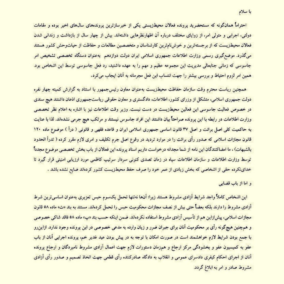 عکس | نامه برخی از فعالان محیط زیست به محسنی اژه ای