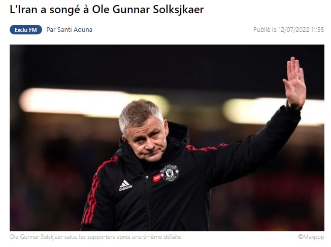 اما حالا رسانه فرانسوی فوت مرکاتو در گزارشی مدعی شده است که سولسشر گزینه تیم ملی فوتبال ایران است. این رسانه فرانسوی در گزارش خود اشاره کرده است که اوله گونار سولسشر بعد از پایان ماجراجویی ناموفق خود در منچستریونایتد تیم دیگری پیدا نکرده و طبق اطلاعات واصله مهاجم و سرمربی سابق منچستریونایتد مورد توجه فدراسیون فوتبال ایران قرار دارد.