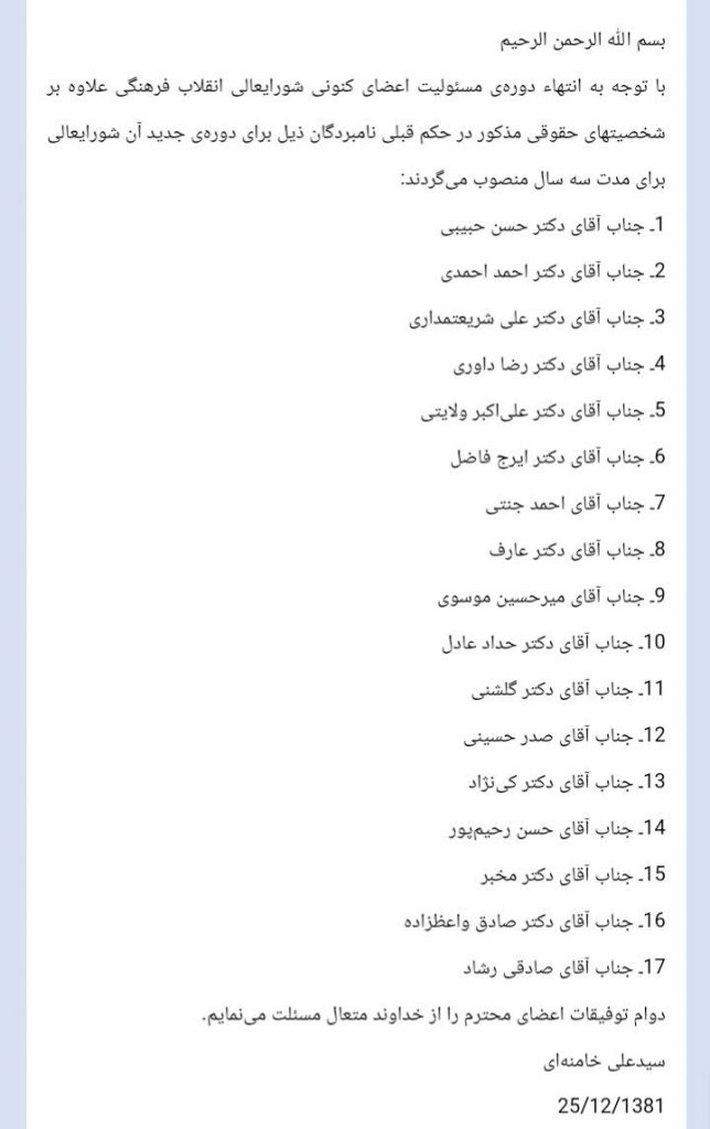 اعضای حقیقی شورای عالی انقلاب فرهنگی در حکم رهبر