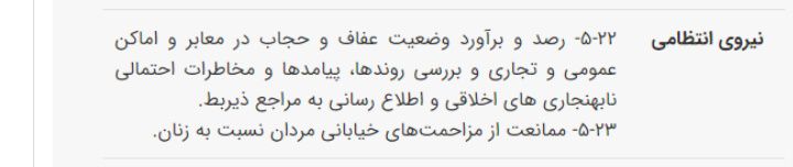– ممانعت از مزاحمت‌های خیابانی مردان نسبت به زنان».