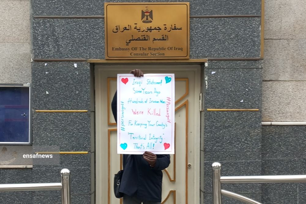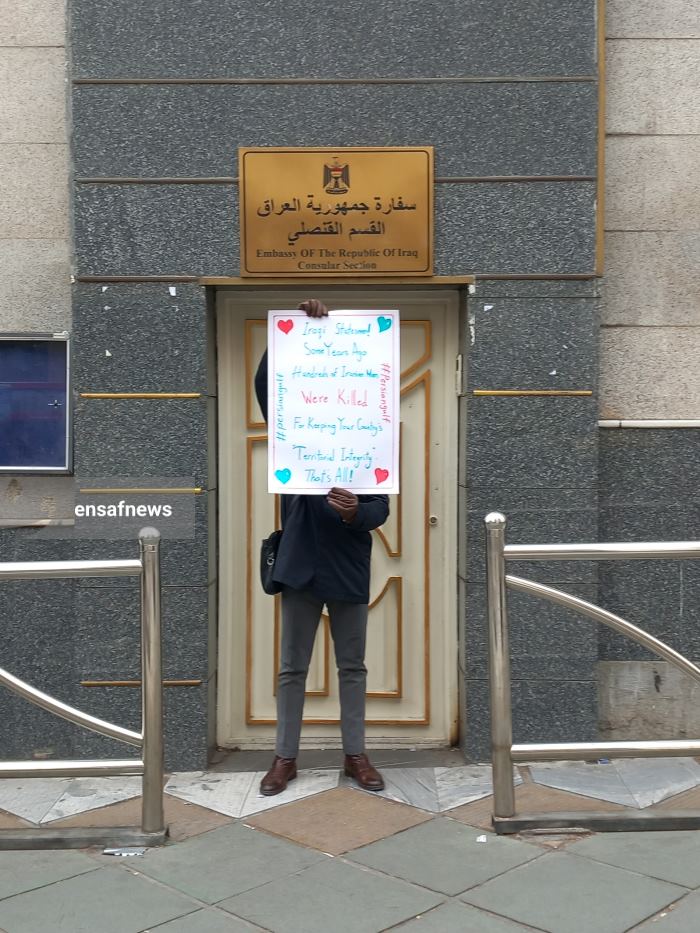 اعتراض یک شهروند ایرانی مقابل سفارت عراق در تهران