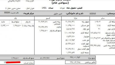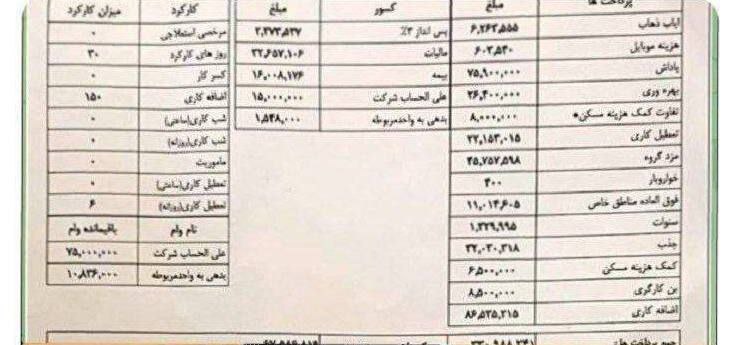 ایشان ۱.۵۰۰.۰۰۰ تومان بابت بن کارگری و حق مسکن دریافت کرده است.