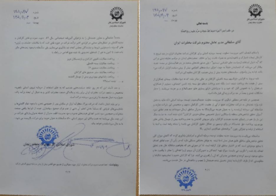به گزارش دریافتی انصاف نیوز، شورای کار مخابرات منطقه زنجان در نامه ای اعتراضی به مدیر عامل شرکت مخابرات ایران به اقدامات و مکاتبات سرپرست جدید معاونت سرمایه انسانی این شرکت شدیدا اعتراض کرده، آن را «موجب تحدید حقوق و معیشت کارکنان» خوانده و خواستار آن شده «به جای اقدامات غیر منطقی، نسبت به وعدههای خلف وعده شده در ارتباط با پرداخت مطالبات قانونی، بیمههای تکمیلی، صندوقهای قرض الحسنه کارکنان و … اقدام نماید».