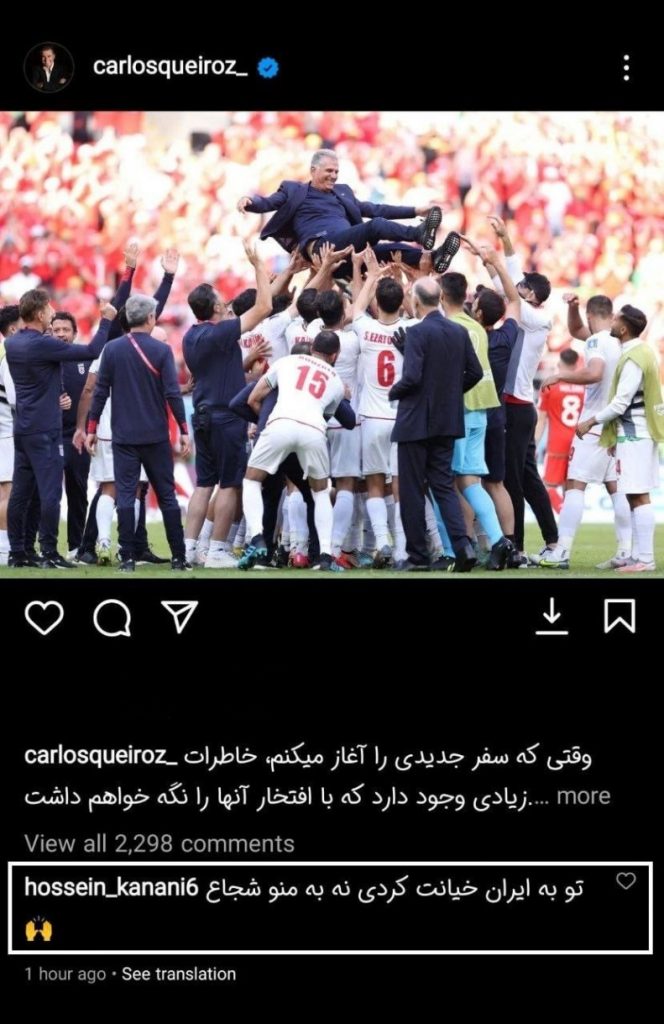 کامنتهای عجیب زیر پست خداحافظی کیروش از تیم ملی ؛ کنعانی کیروش را خائن خطاب کرد، خانزاده پای خردادیان را وسط کشید!