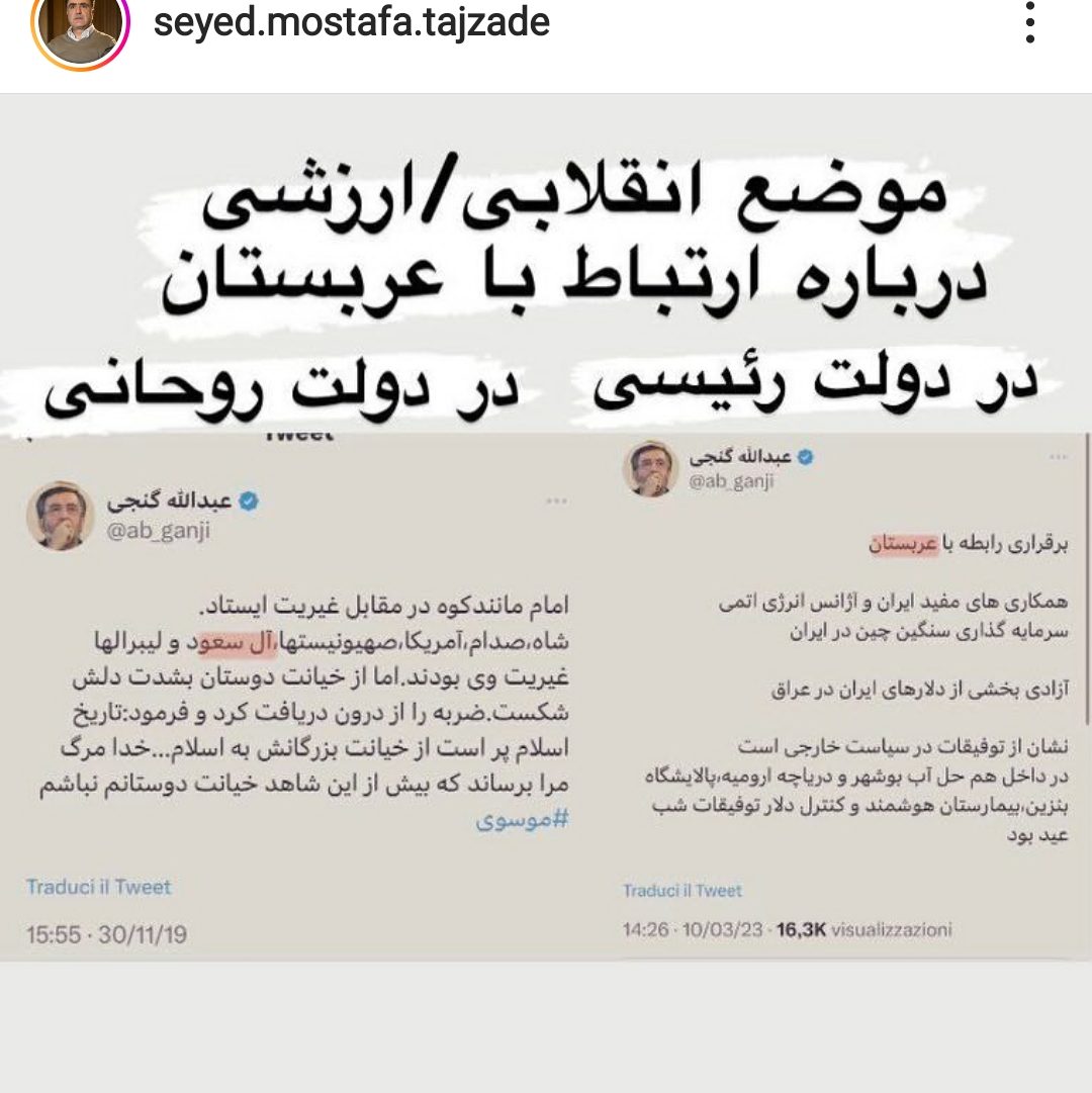 صفحه اینستاگرامی مصطفی تاجزاده دو توییت از عبدالله را منتشر کرد انتهای پیام