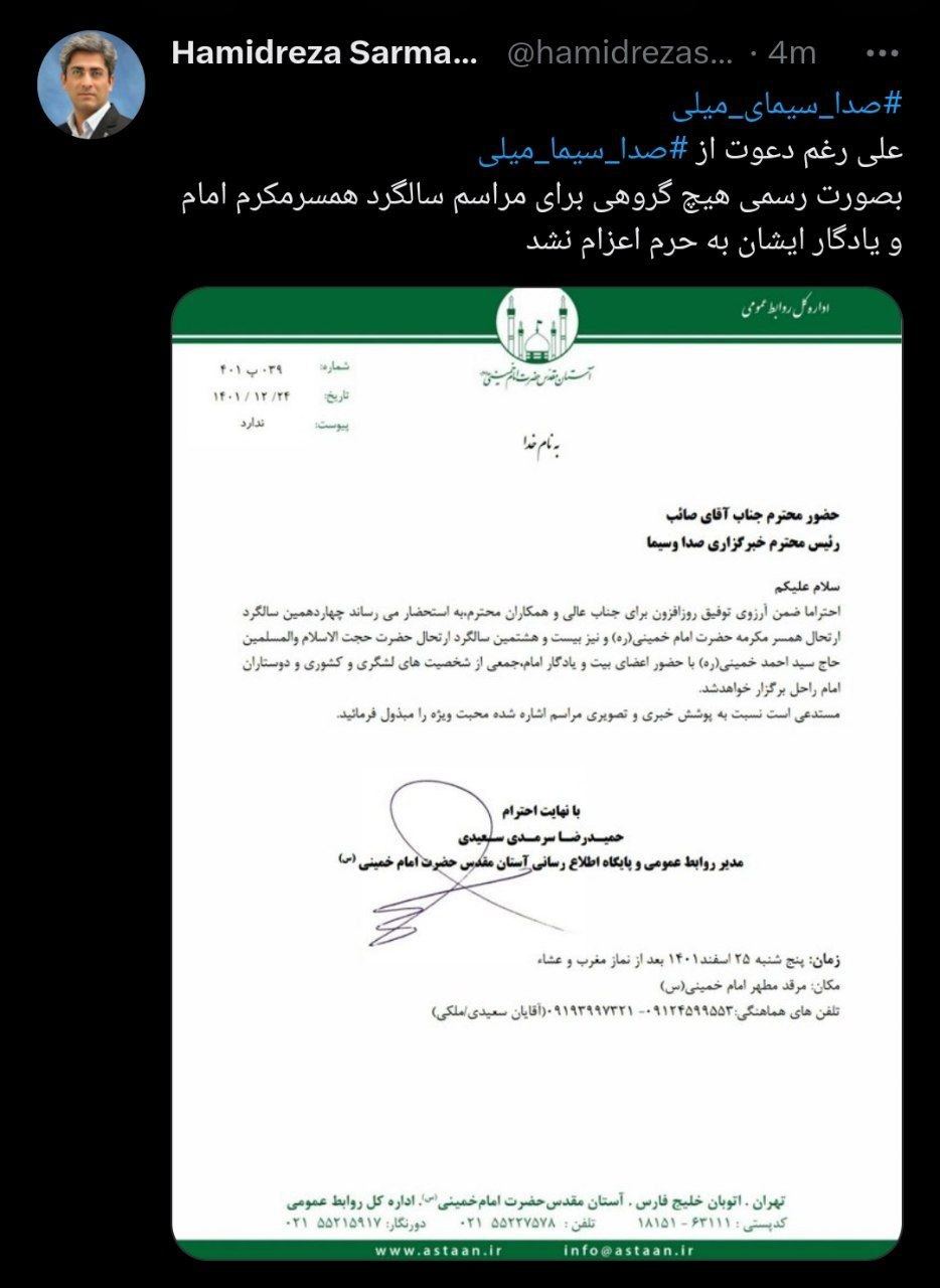 بایکوت مراسم سالگرد سیداحمد خمینی در صداوسیما ، «تکرار رویکردی سوال برانگیز»