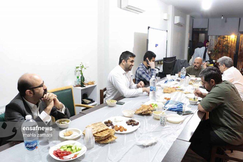 آسیه توحیدنژاد، انصاف نیوز: شنبه شب در دفتر انصاف نیوز مهمانی افطار بود. علاوه بر اعضای تحریریه و گروه تحلیلی، سایر مهمانها از میان فعالان حوزههای مختلف ازجمله رسانهای، سیاسی و دانشجویی بودند، ازجمله محمد عزلتی مقدم، جواد امام، فیضالله عربسرخی، محمد خدادی، احمد زیدآبادی، بیژن مقدم، محمد آقازاده، محمدمراد بیات، ساسان کریمی، سید احسان هاشمی، مطهره گونهای، سید ستار میراحمدی، … دور میزهای آمادهی افطار نشستند یا مسجدی و روی فرش افطار کردند.
