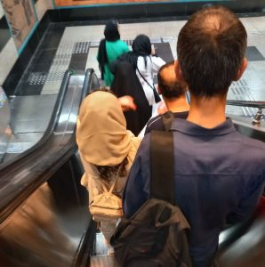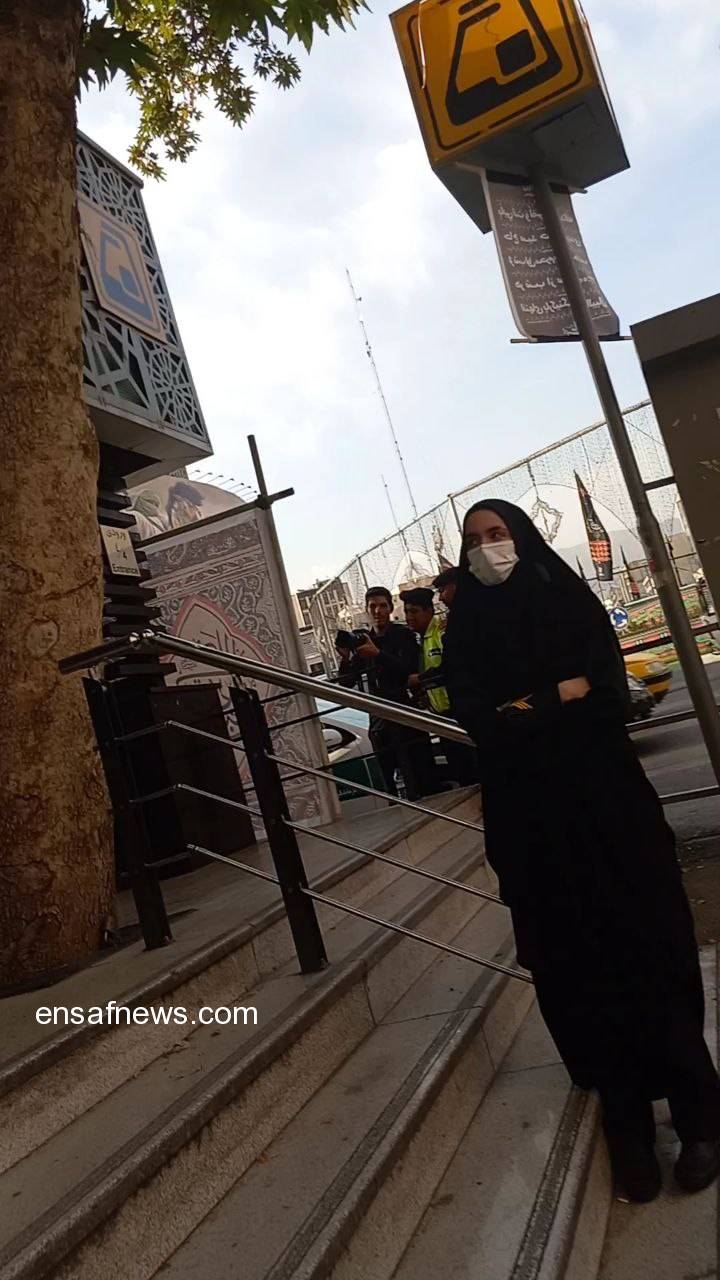 از پله برقی خروجی مترو به سمت ساختمان تئاتر شهر که بالا میآمدید مامور زن کنار مامور نیروی انتظامی با لباس مشکی ایستاده بود. تعداد ماموران نیروی انتظامی اطراف خروجی مترو تئاتر شهر هم بسیار زیاد بود. ماموران انضباط شهری شهرداری با لباسهای کرم و قهوهای به جمعیت نیروی انتظامی اضافه شده بود. ظاهرا حضورشان به دلیل مراسمی بود که شهرداری در این محل به مناسبت محرم برگزار میکرد.