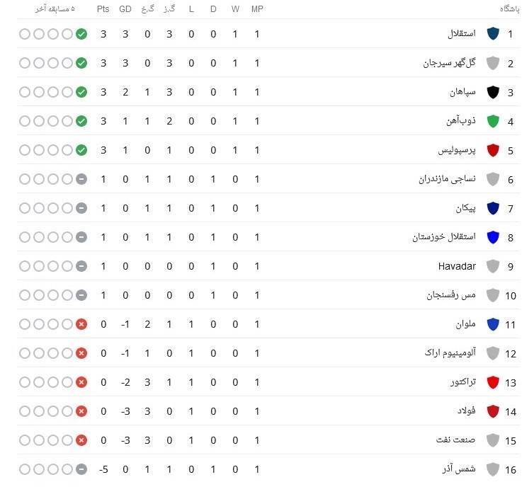 نتایج کامل هفته اول لیگ برتر ایران 1403_1402 + جدول | از برد بزرگ سپاهان در بازی بزرگ تا شروع خوب سرخابیها