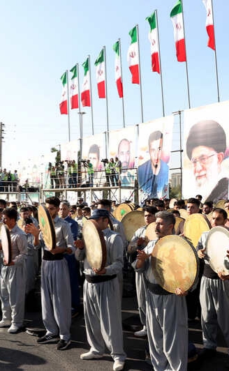 پایگاه اطلاعرسانی ریاستجمهوری نوشت: در ابتدای مراسم رژه نیروهای مسلح دفنوازان کُرد به مناسبت در پیش بودن عید با سعادت میلاد پیامبر اسلام (ص) و جشنهای ماه ربیعالاول به اجرای مراسم پرداختند.