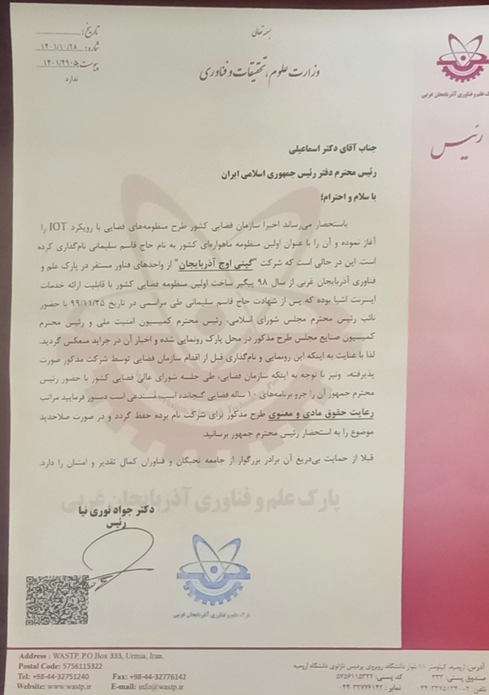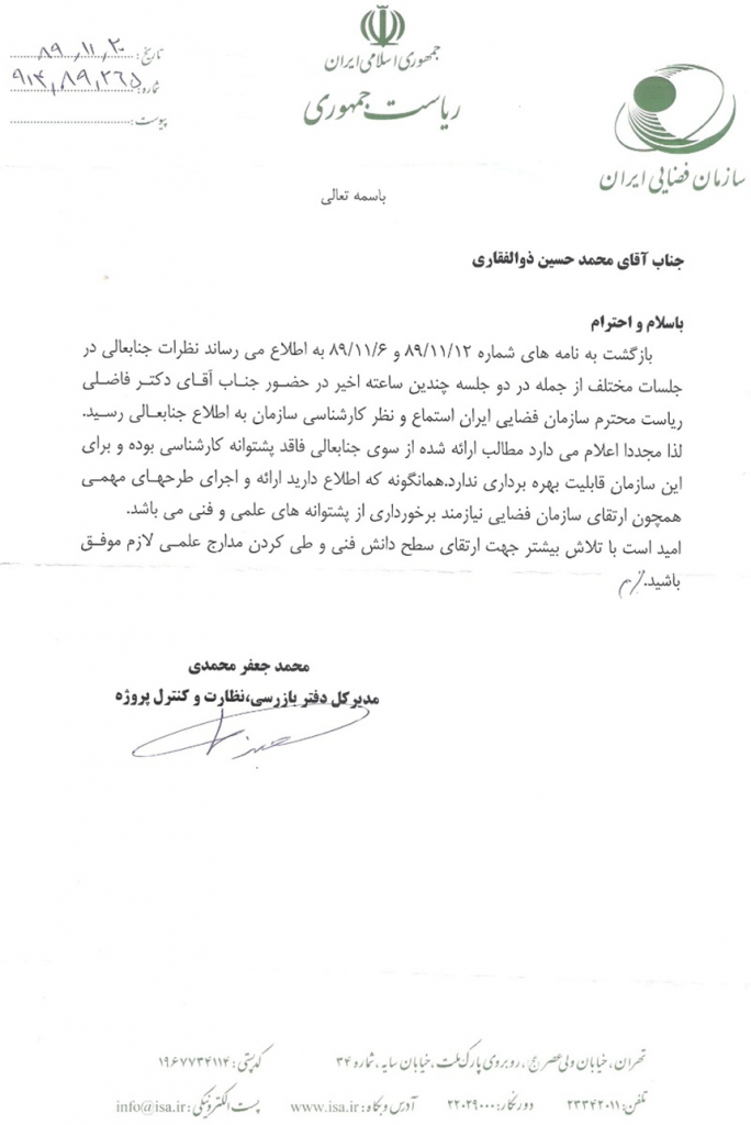 اسناد و انتقادهای صاحب طرح اروم ست خطاب به سازمان فضایی