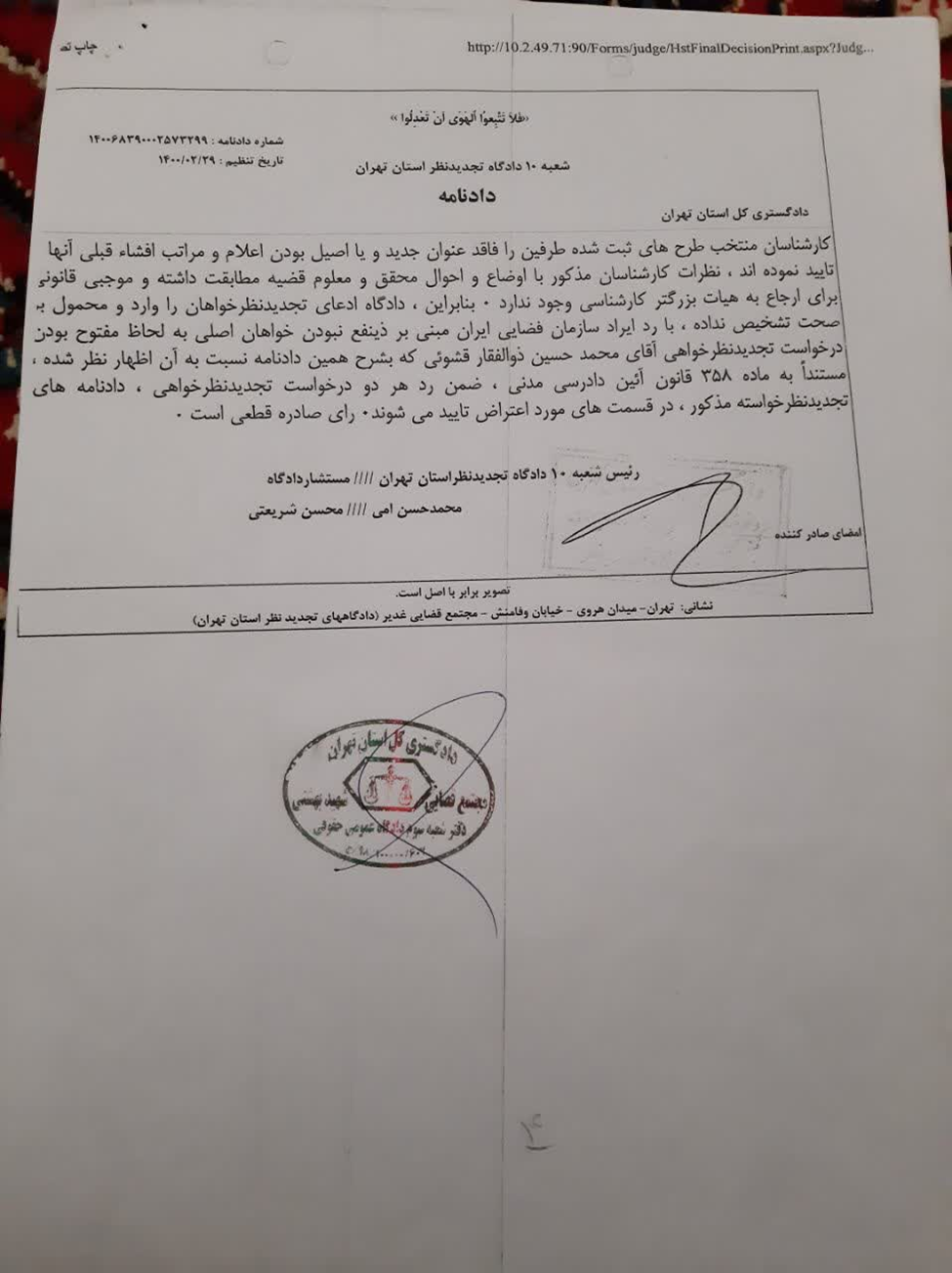 آقای ذوالفقاری چند مورد از اسناد قرارهای میان او و سازمان فضایی و درگیری این بین را در اختیار انصاف نیوز قرار داده است که در ادامه میتوانید ببینید: