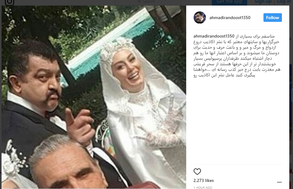 ایراندوست ساعاتی بعد او این خبر را تکذیب کرد. متن و عکس پست ایراندوست در پی میآید: