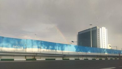 پس از بارش چند دقیقه ای در کنار خورشید در آسمان تهران رنگین کمان تشکیل شد. انتهای پیام